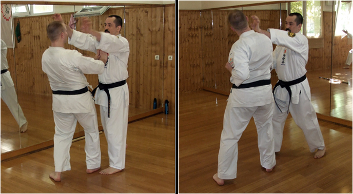 | Afanasiev Ruslan & Zhovtiak Igor in the OKIKUKAI Sanchin Dojo |